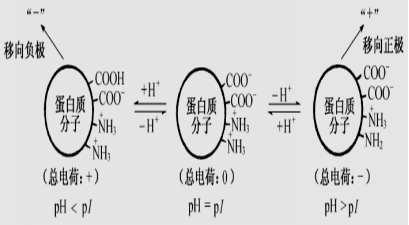 溶液的PH決定帶電顆粒的解離程度,也即決定其帶靜電荷的量。對蛋白質(zhì)而言,溶液pH值離等電點(diǎn)越遠(yuǎn),則顆粒所帶的凈電荷越多,泳動(dòng)速度也越快;反之,則越慢。因此分離某種蛋白質(zhì)混合液時(shí),應(yīng)選擇合適的pH,使欲分離的各種蛋白質(zhì)所帶的電荷數(shù)量有較大的差異